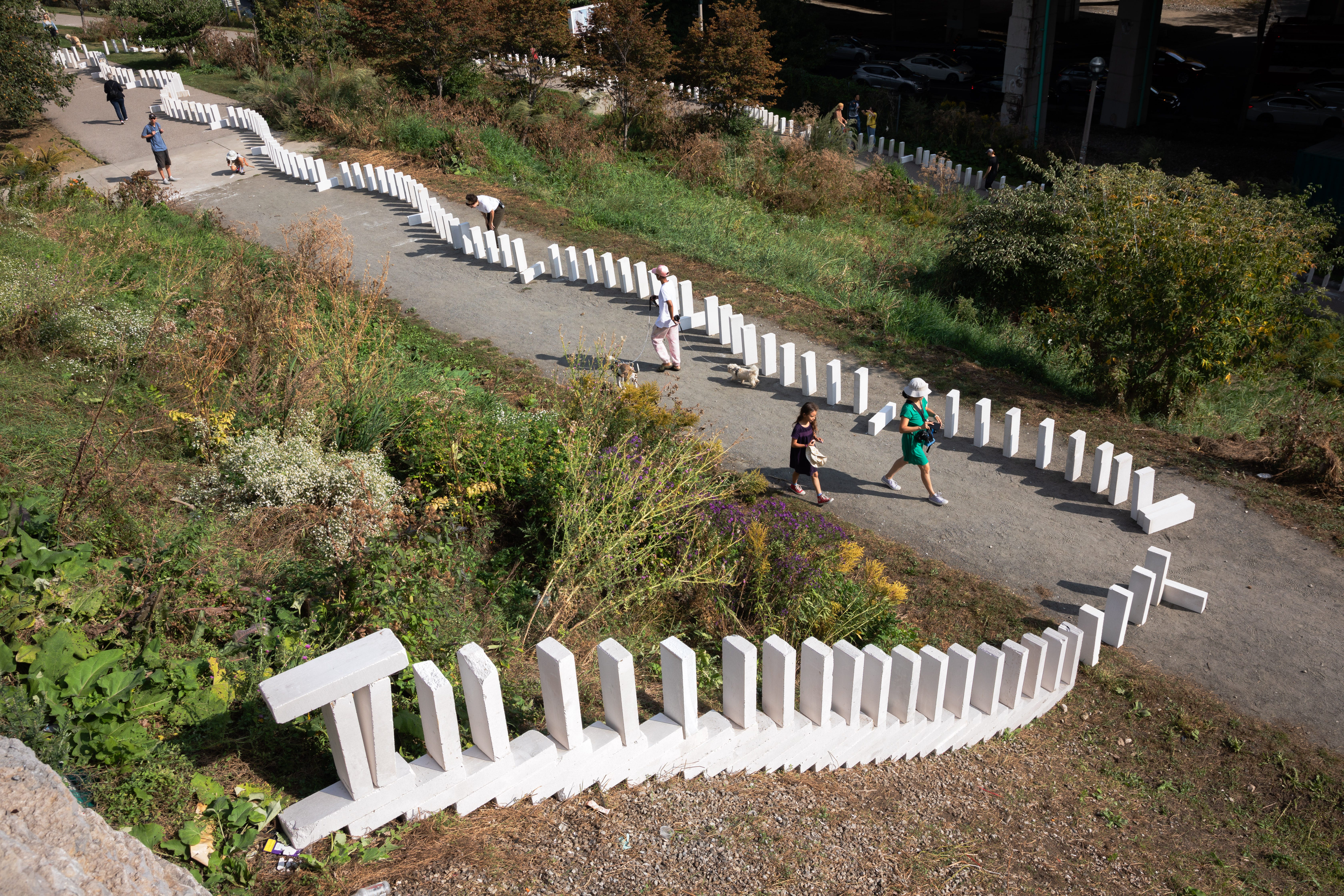 It was simple and small, a brick, after a brick, after a brick. Yet, it was also grandiose, unfurling along 2.5 kilometres from The Wellington Destructor to the edge of Lake Ontario, by the recently restored Canada Malting Silos - audacious in its takeover of parks, walkways, restaurants, people’s homes, front yards, libraries and more.