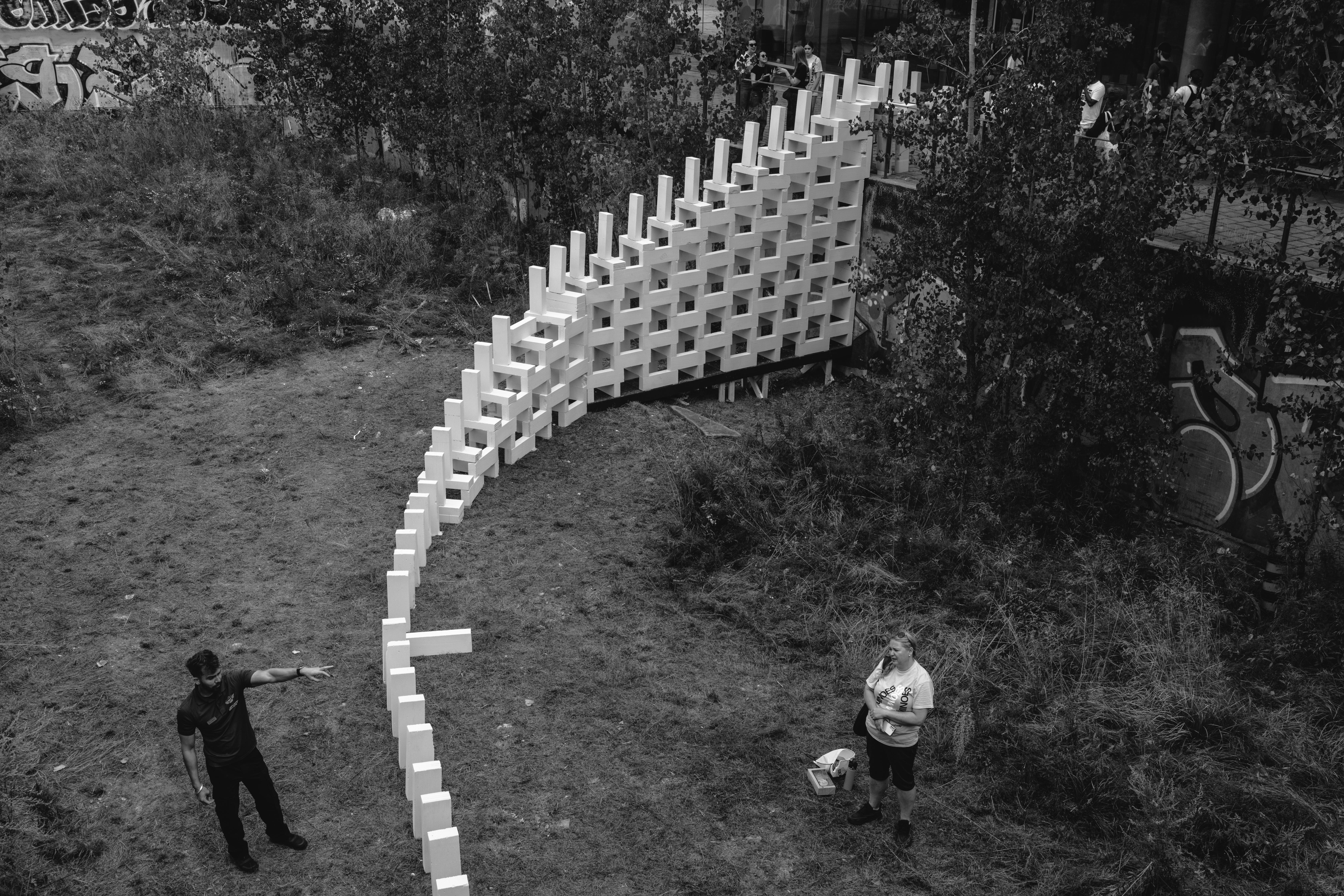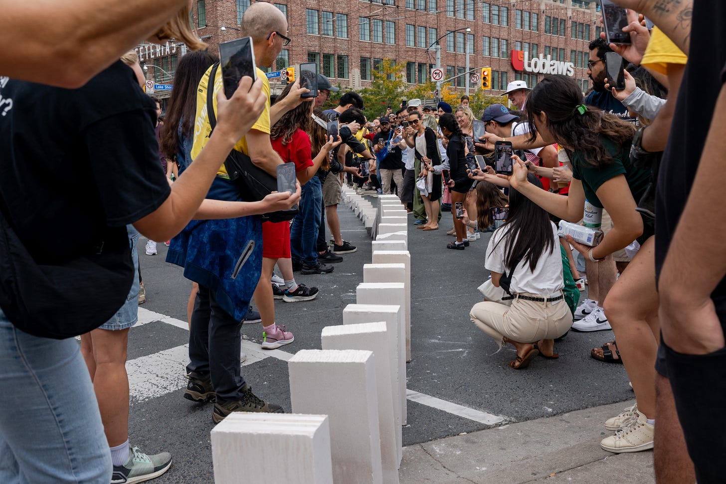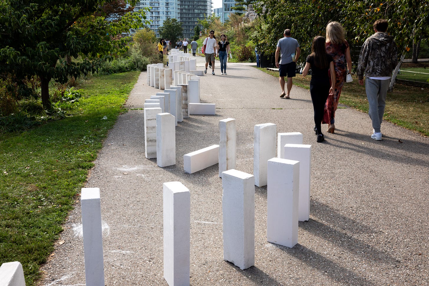 This was Dominoes, 8000, plain, white breezeblocks assembled in a neat labyrinth, from end to end. After winding its way through London, England in 2009, linking the five host boroughs preceding the 2012 Olympic games, it has since been displayed in cities across South Africa, Europe, and Australia, its first run in North America was here, in Toronto.